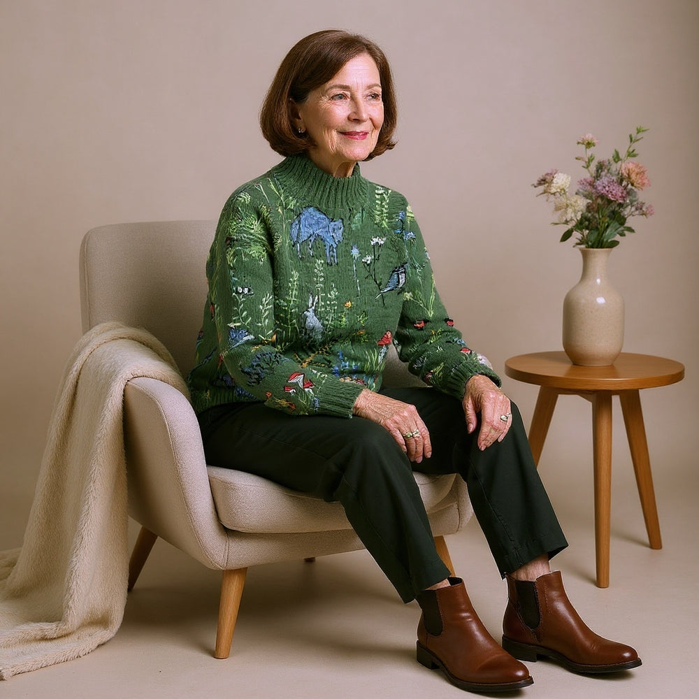 HANA™ | Cozy Knitted Sweater with Forest-Inspired Print